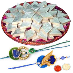 Order online for your brothers staying at a distance this Jubilant Rakhi Combo Hamper on Raksha Bandhan to convey your best wishes for their prosperous future. The Combo Pack has a pair of two alluring Rakhis assembled with a box full of some lip-smacking Kaju Katlis (500 Gms).