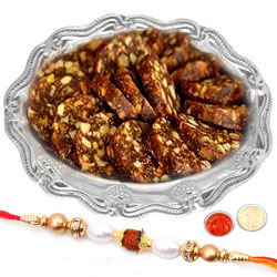 Gifts2Bangalore.com – Send Online Sumptuous Combo of Khajur Roll (500g) with One Pious Rakhi to Bangalore